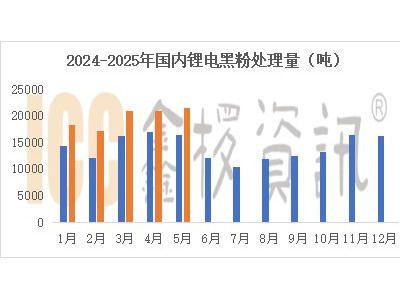 2025年5月國(guó)內(nèi)廢舊鋰電池黑粉統(tǒng)計(jì)處...